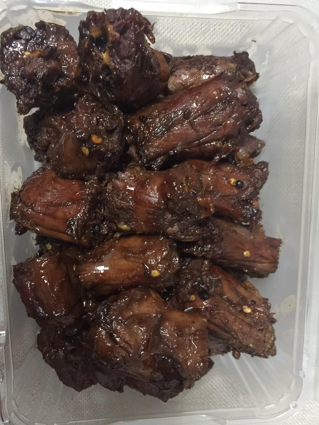 洗干净的鸭脖切段,大小随你开心。一定要过完水清洗后切,否则鸭肉不够紧