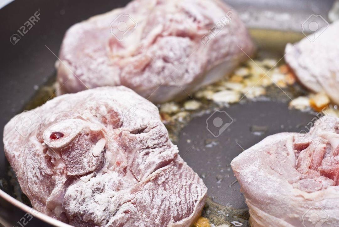 牛膝肉均匀抹上盐,胡椒,迷迭香, 白胡椒,稍微按摩下 然后裹上层薄面粉 腌一会
