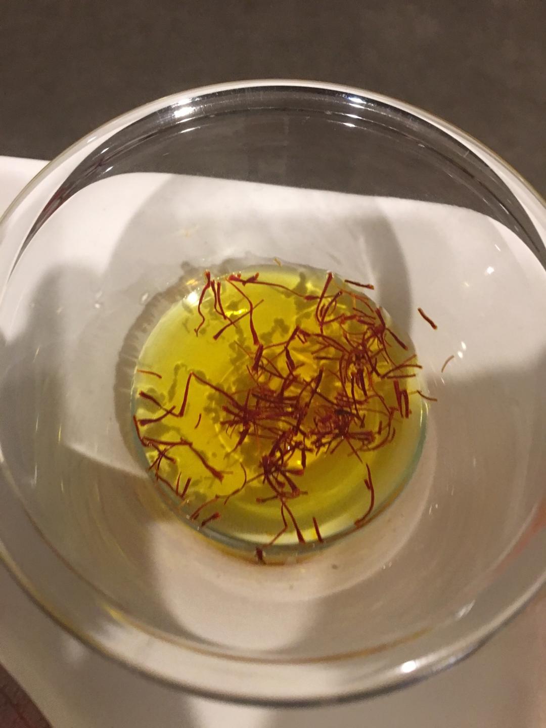 在米饭做好期间,藏红花用温水泡着 下来颜色。