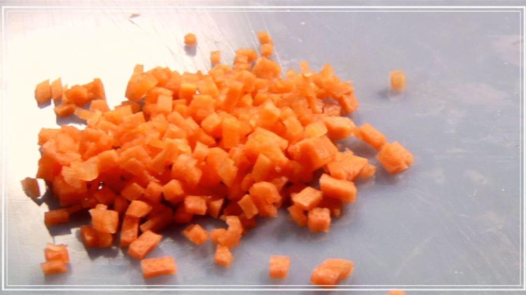 洋葱一样切成超级超级小的粒 蒜瓣切大点 一会好挑出来。