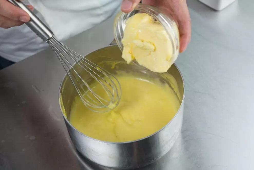 5. 待蛋奶糊冷却至60°左右加入黄油搅拌均匀。