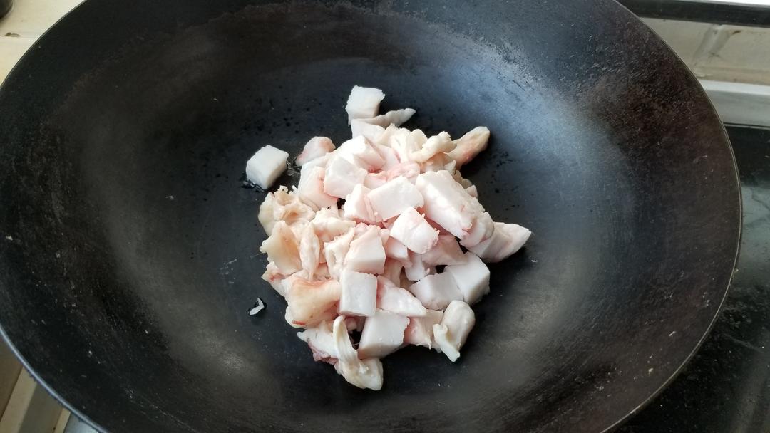 把水分炒干,只剩下油,瘦肉表面炒的少许金黄,闻到肉香