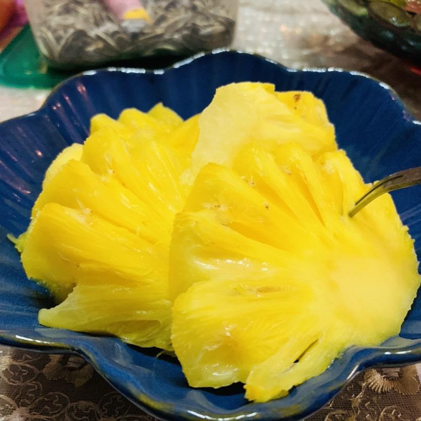 春天的菠萝淡淡清香扑鼻,体贴的大北鼻买来用盐水泡了,很是香甜可口。