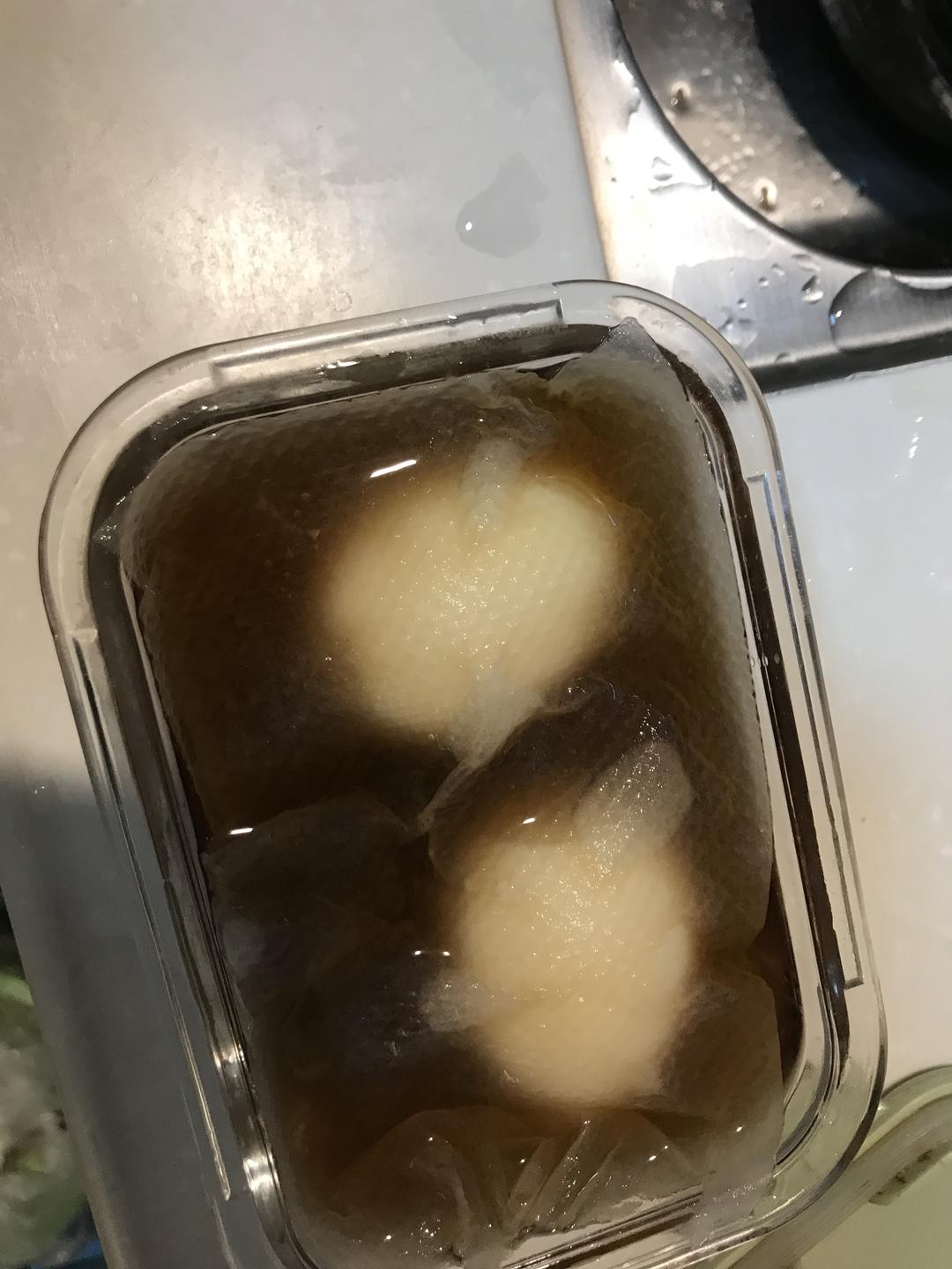 上面盖一层厨房纸,没有的话还可以用一个保鲜袋放进去密封,总而言之就是让鸡蛋被酱汁包住。
