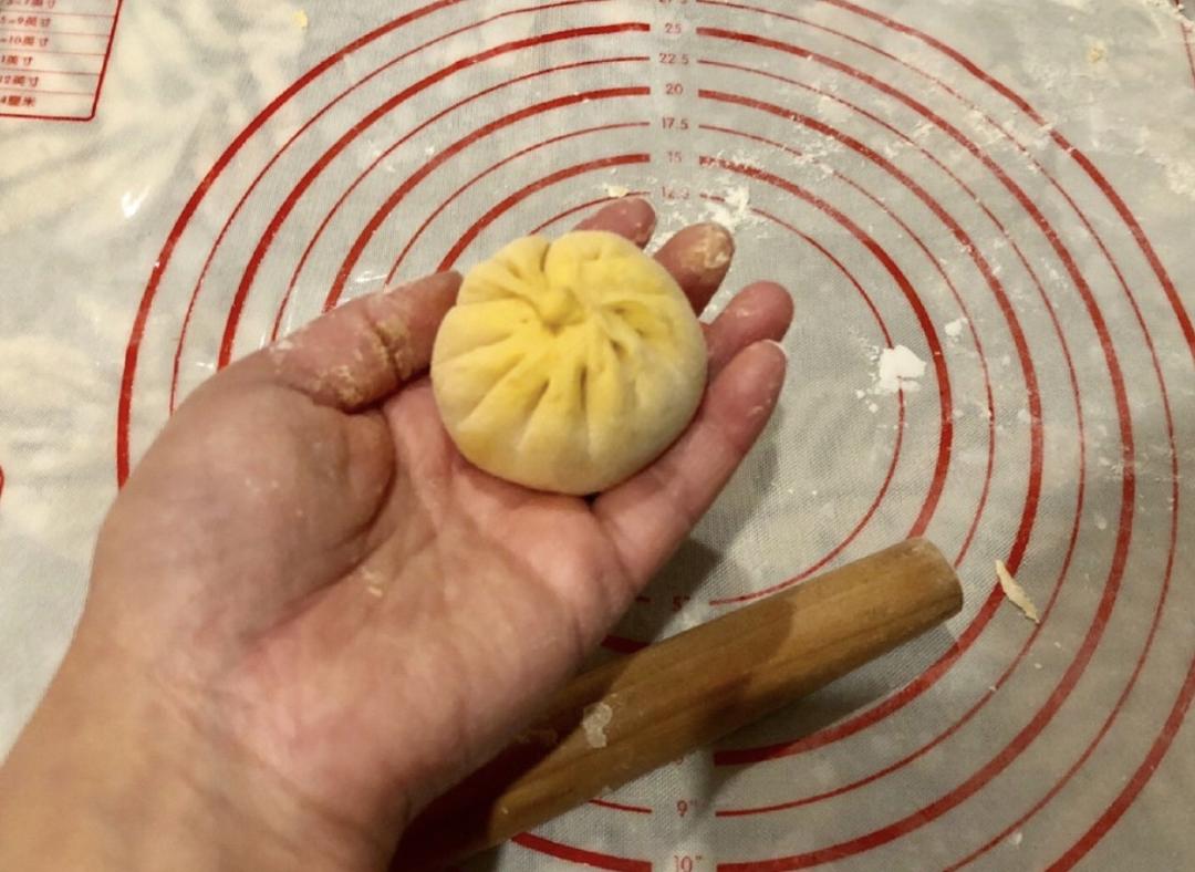 边缘慢慢收起,捏出褶子,捏成包子的形状