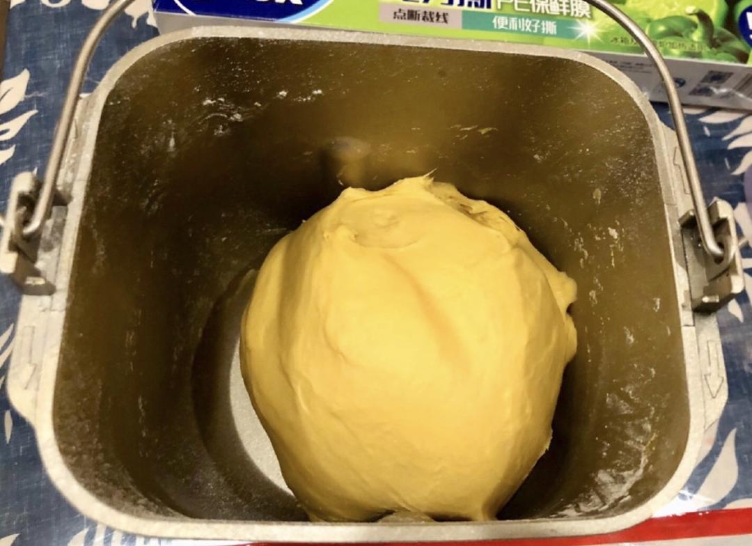 这是揉好的面团,其中材料中的水,看你面团揉的状态适量加入,因为我的南瓜泥比较干,所以我加了点水,如果你的南瓜泥比较湿就可以不加,主要看面团状态