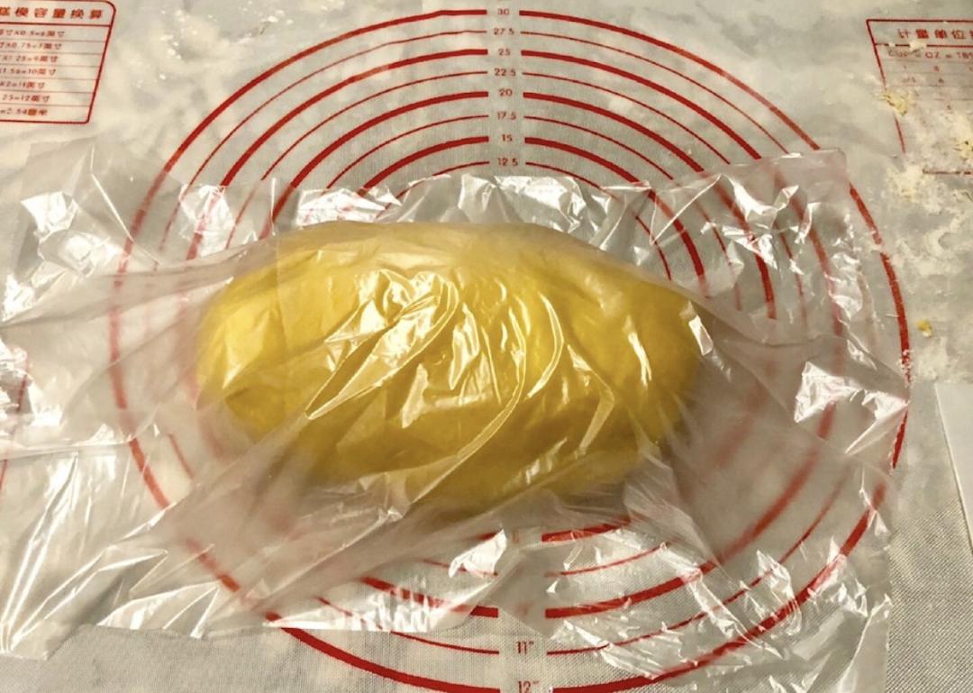 取出面团揉匀,盖保鲜膜醒5分钟