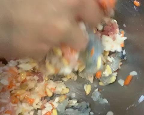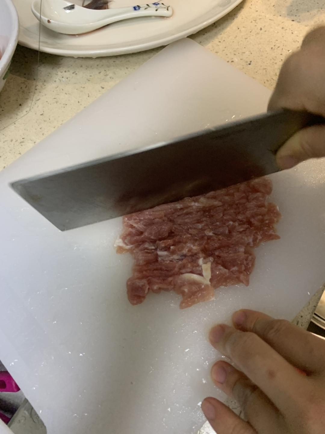 然后填入肉馅,尽量填饱满一点