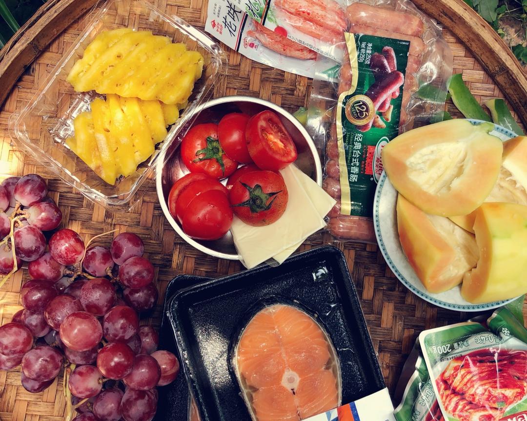 ♡ 蔬菜和水果是点亮烧烤的关键。🍅番茄切厚片简单烤制后加上水牛乳奶酪🧀️可以即刻打造出马苏里拉奶酪番茄色拉。 ♡高品质的蟹肉棒香肠则是小朋友们的最爱。