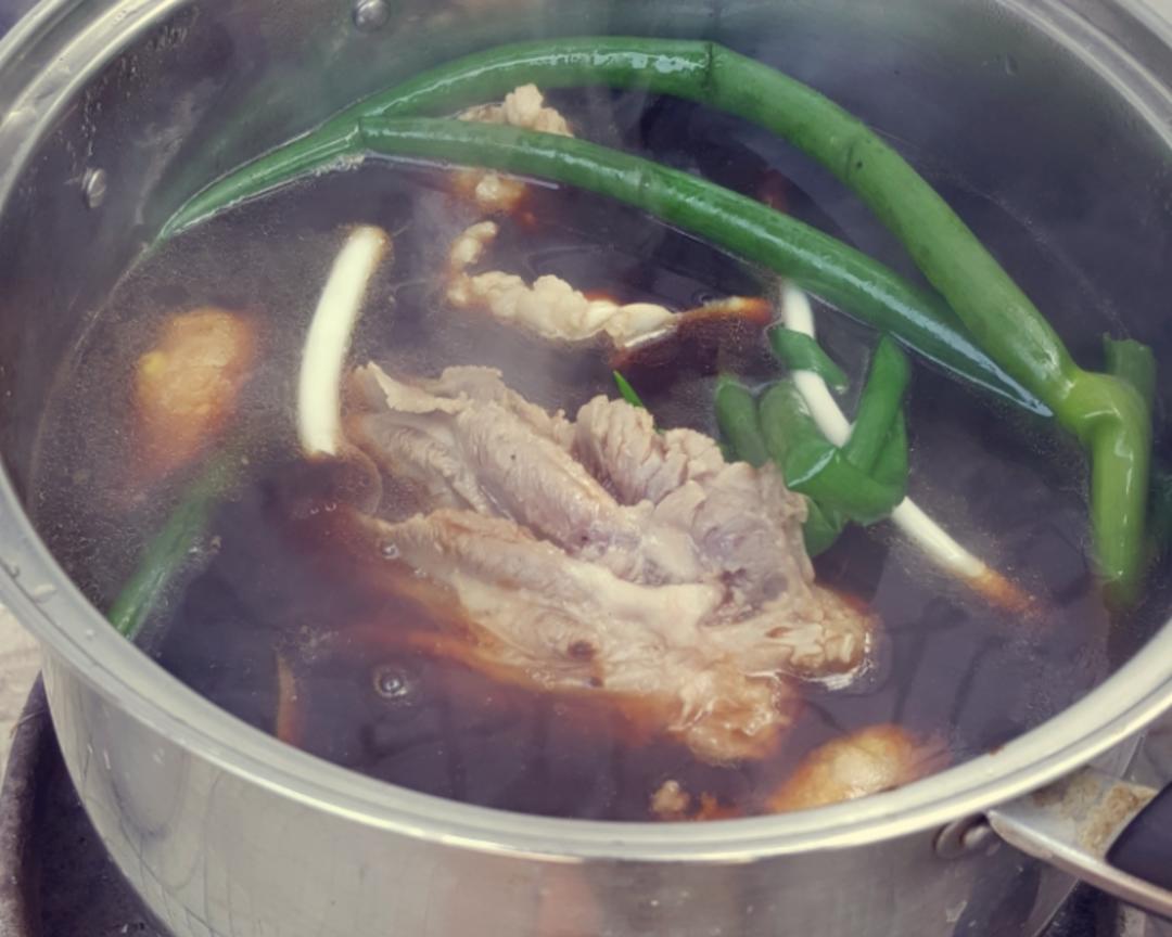 腌好的牛腿子用清水冲洗一下 水开后将牛腿子放入煮5分钟 捞出 控水 将所有调料放入锅中(盐除外)煮开 放牛肉 大火煮开后改小火🔥 煮二个半小时(我买的是小牛肉)关火