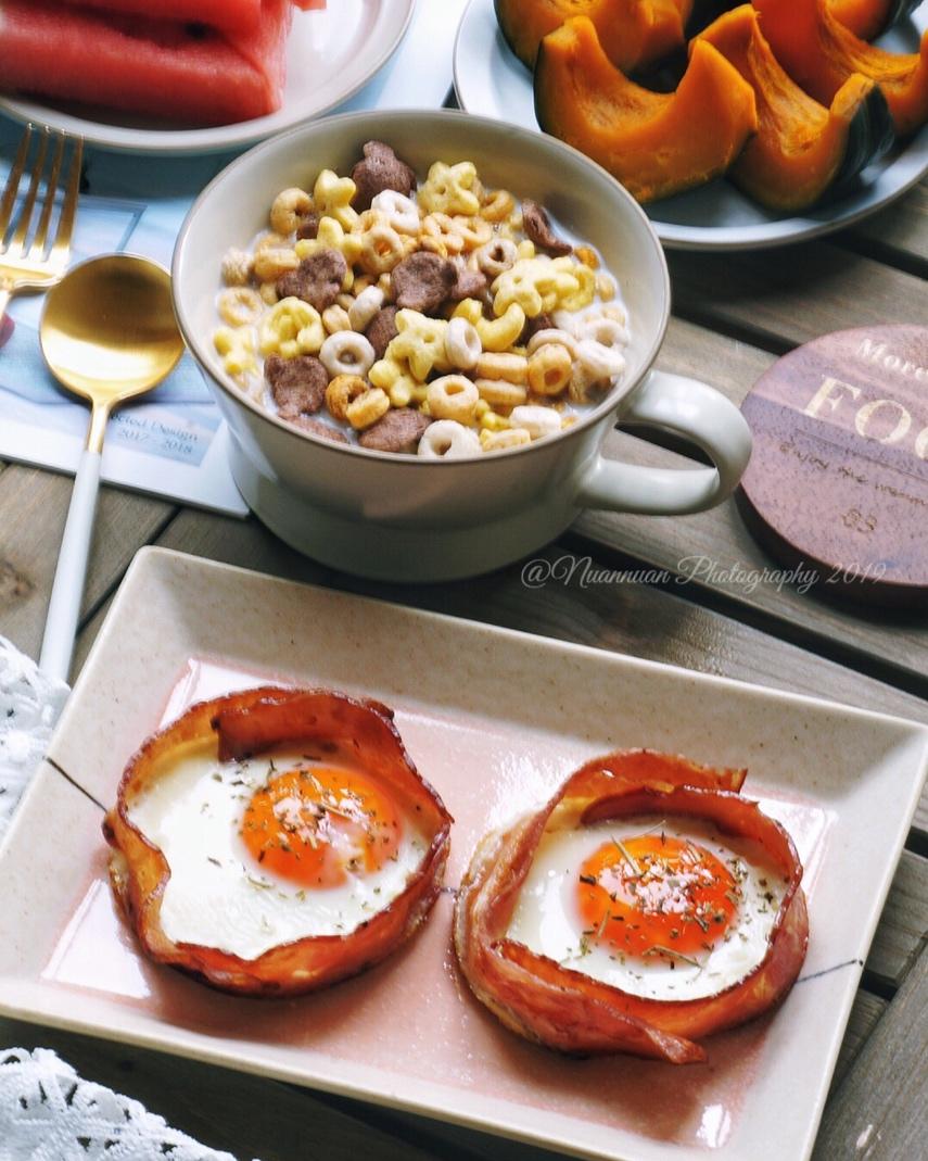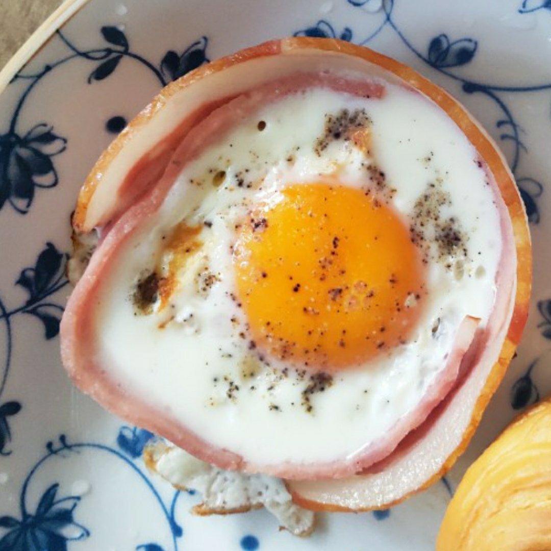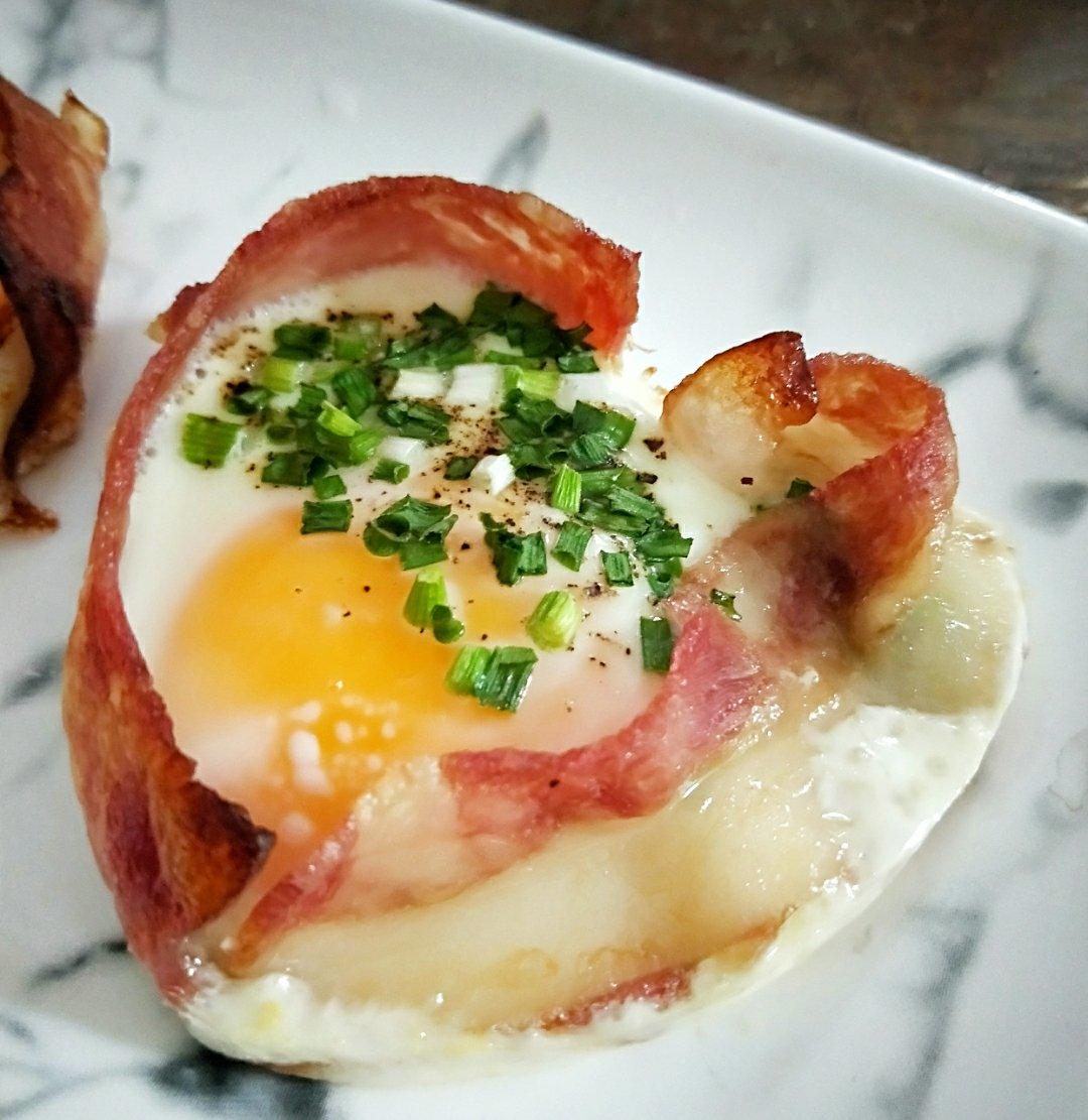 #早餐•2020年3月25日#感谢博主的分享,太有成就感了,本来以为做不成,我没有模具,一切靠自我发挥,培根真的配什么都很棒棒棒~