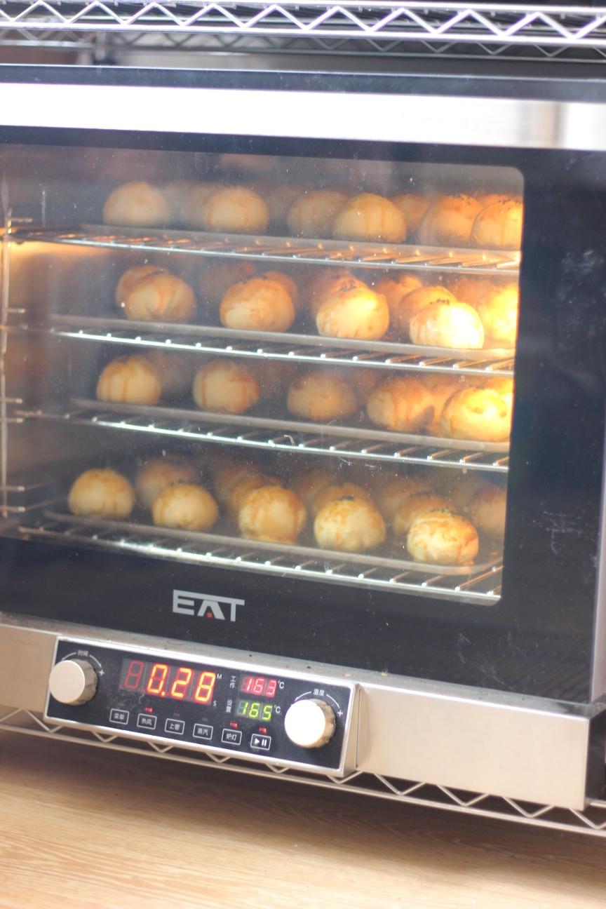 EAT风炉提前180度预热,一盘一盘地放入四盘蛋黄酥