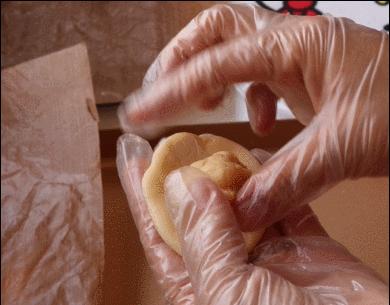 水油皮和油酥也要分成小剂子,每一个都要称量,多个一两克没关系,但大致要准确,称量好的小剂子也要及时用保鲜膜盖起来,防止表皮变干。