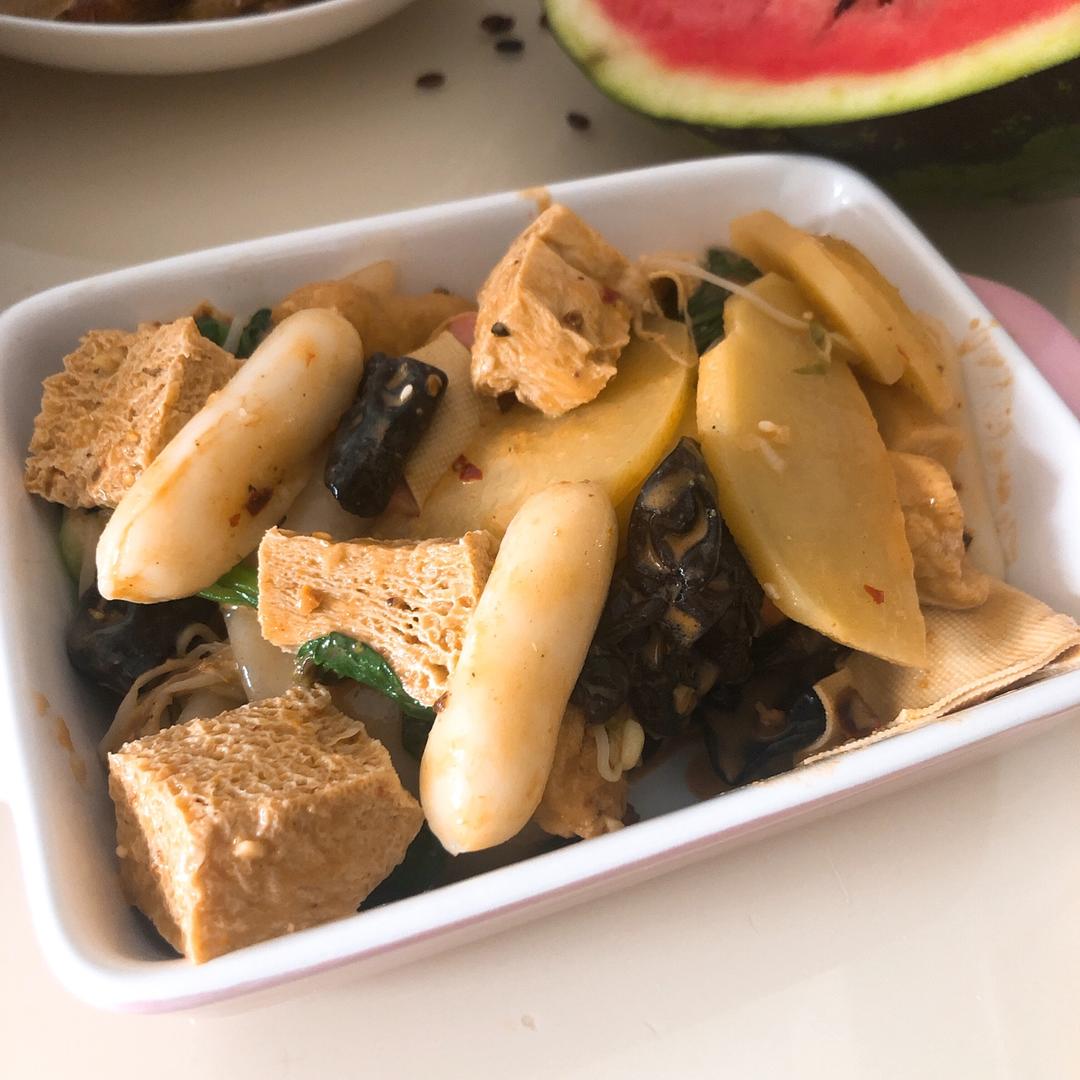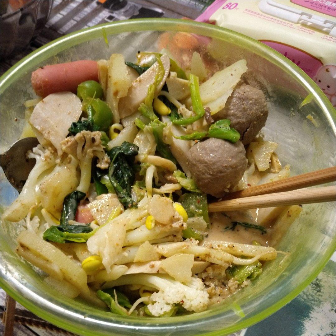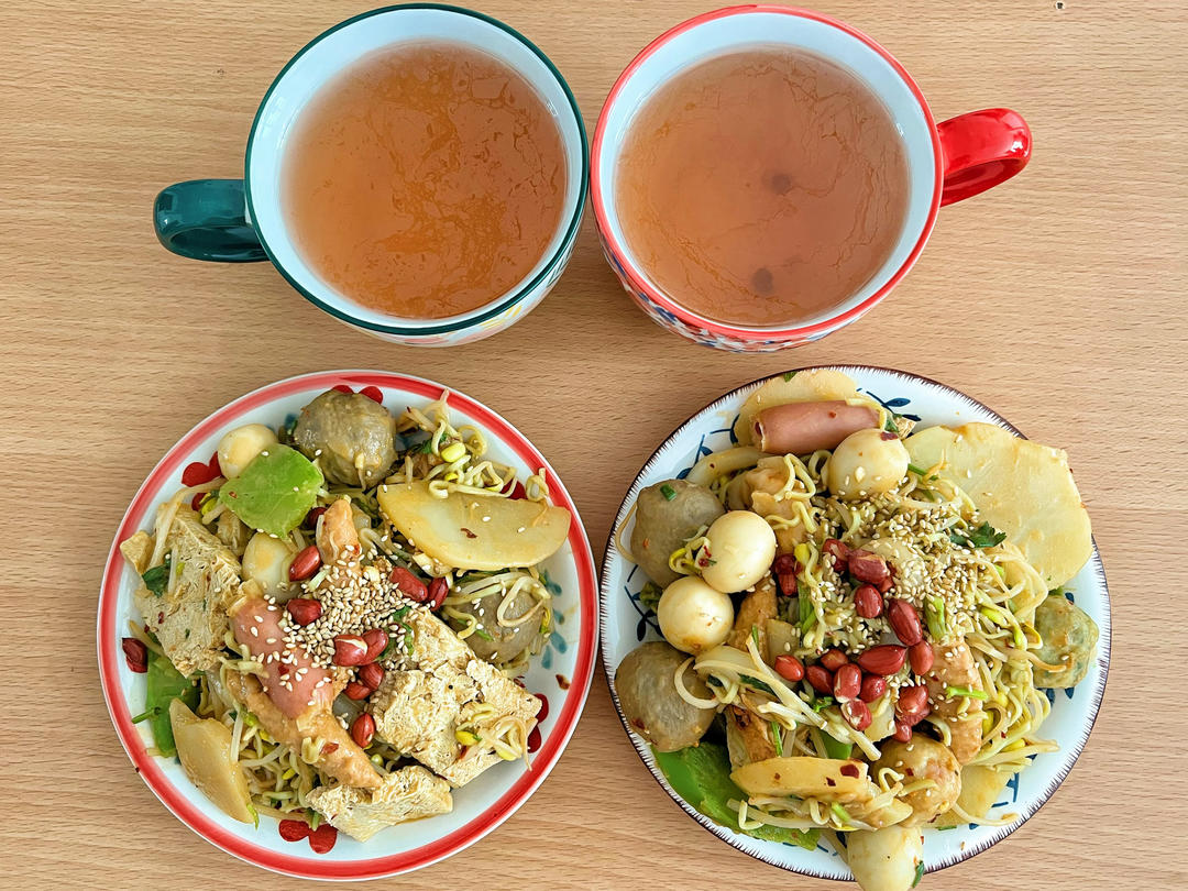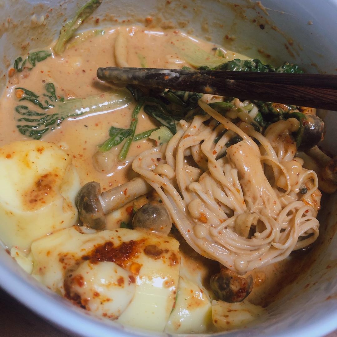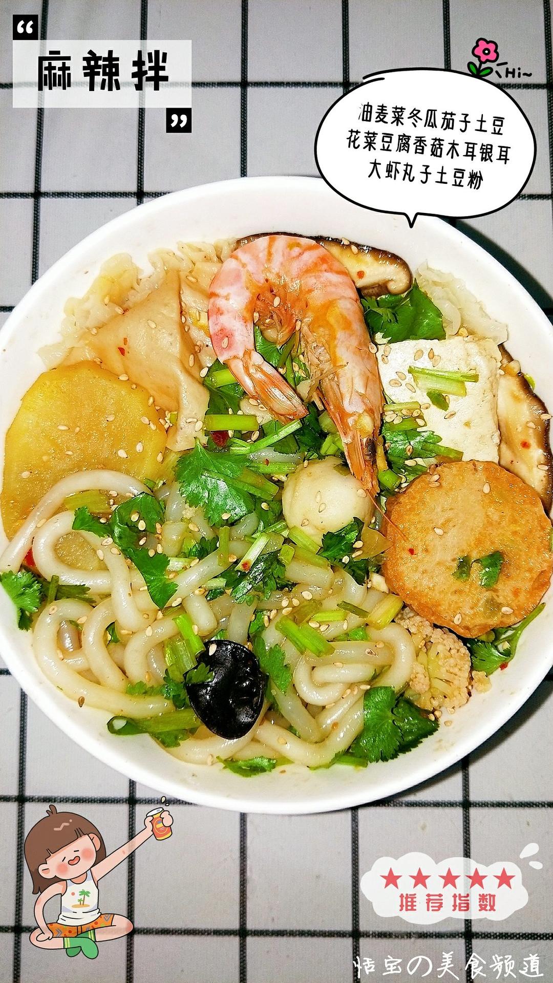 感觉就是无汤版麻辣烫哈哈不知道吃啥的时候就会吃这种各种食材家里有啥放啥 既丰盛又美味~麻酱一定要多 超香der~😜
