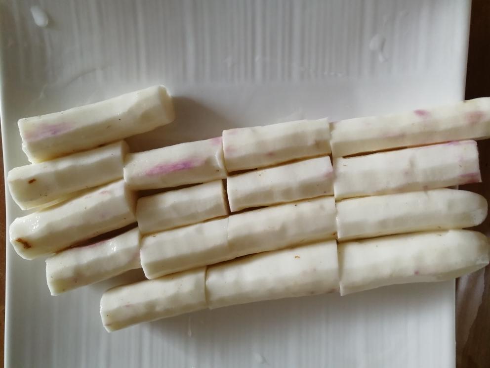 铁棍山药洗净削皮,切成段,隔水蒸10分钟。