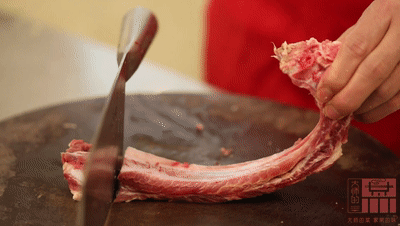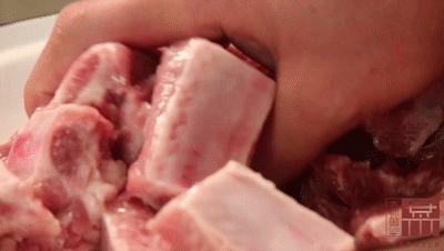 ✔ 将排骨宰成3cm左右的寸节,然后用清水将排骨的血水冲洗干净。