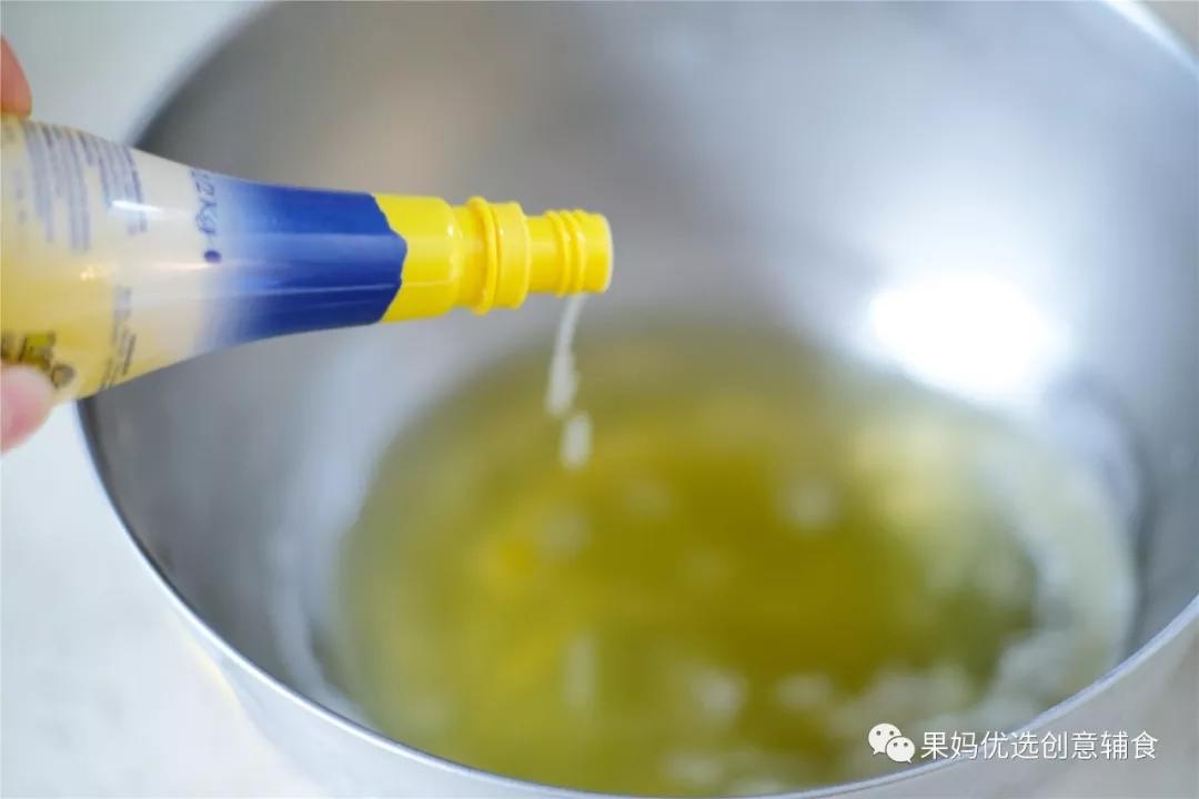 用蛋抽手动搅打 直到使油水融合 完全乳化。看起来像牛奶一样。