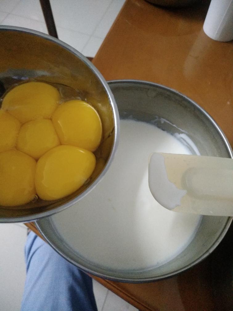 鸡蛋🥚蛋黄与蛋白分离,将蛋黄分三次加入到酸奶混合液中,搅拌均匀