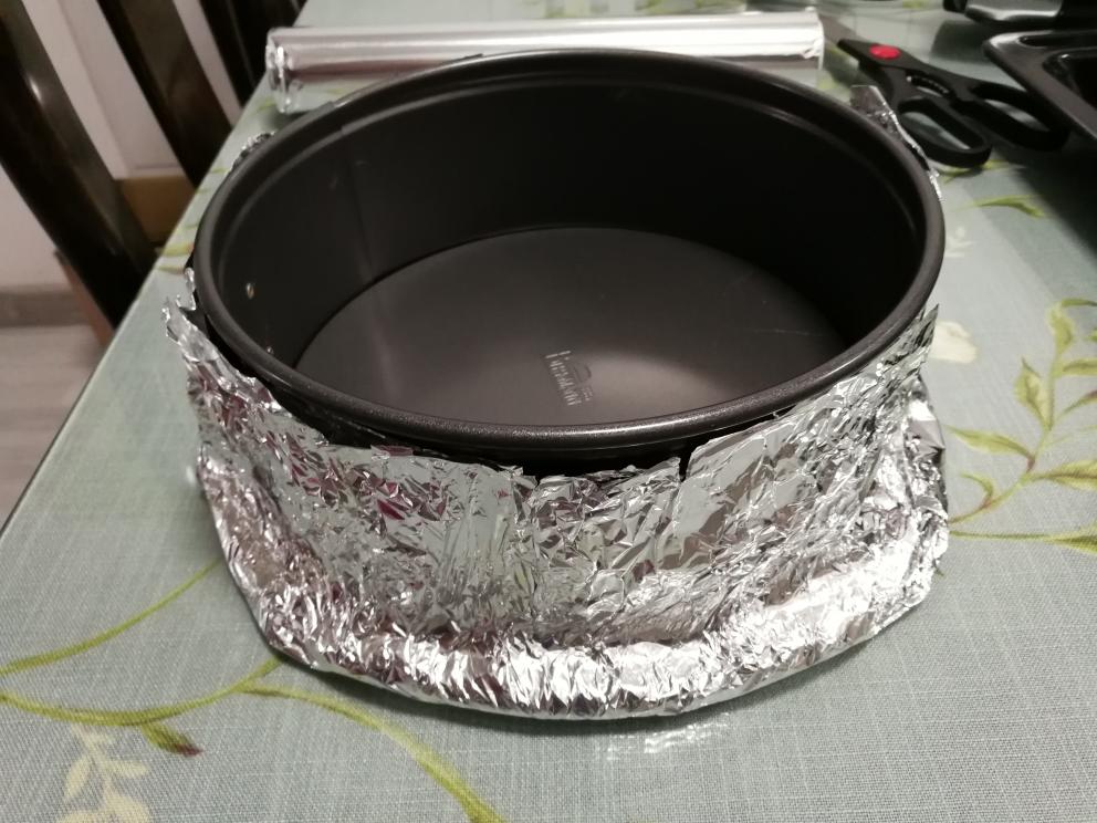 锡纸多层包好八寸的戚风模具