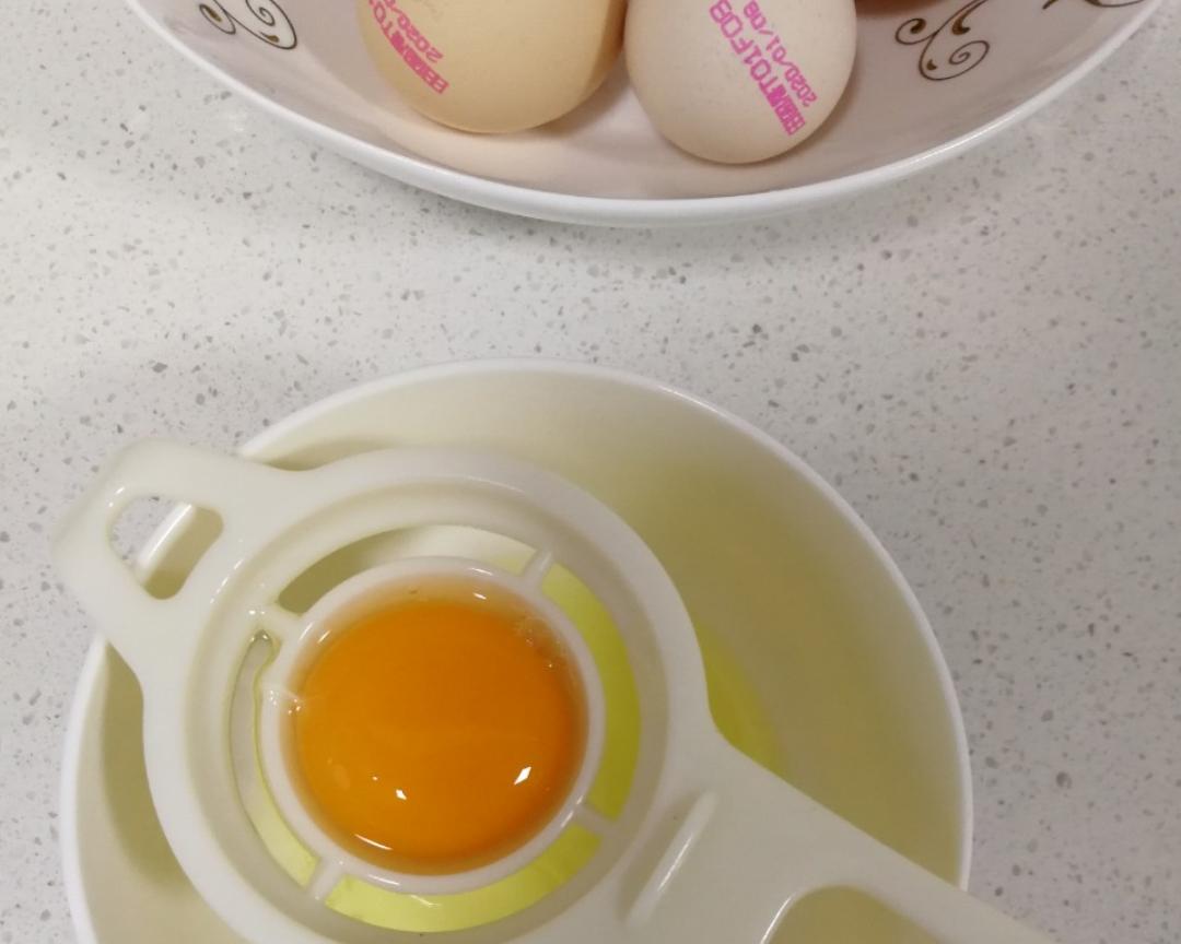 蛋黄蛋白分离,防止有坏蛋,一个一个的单独在一个小碗分离