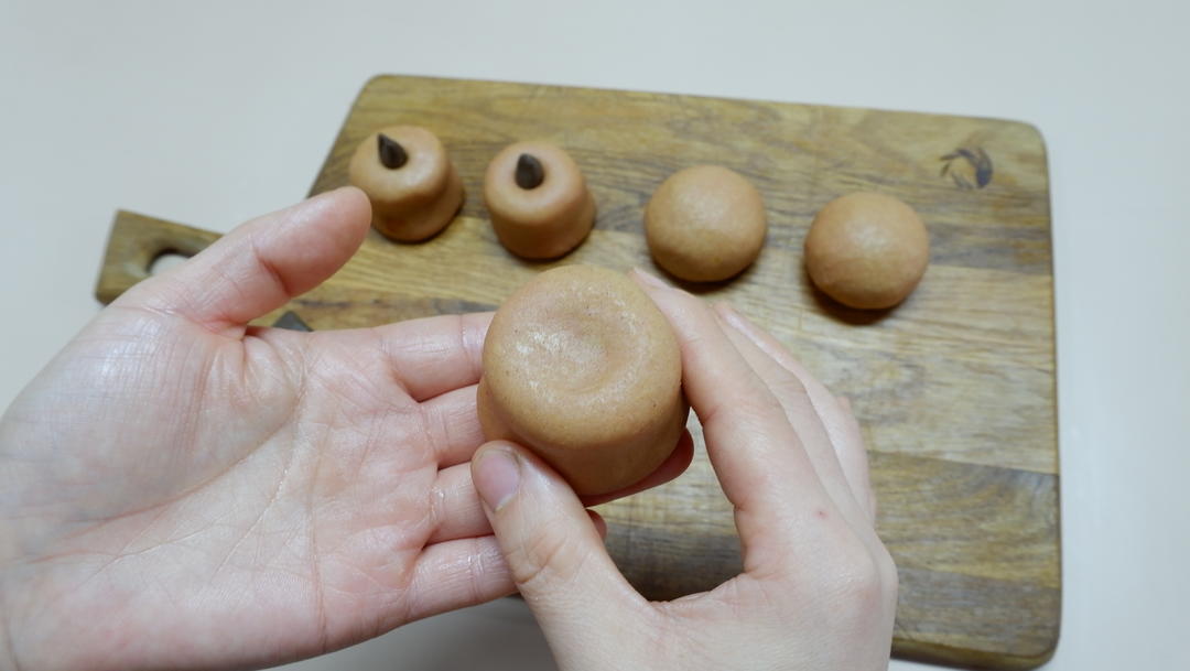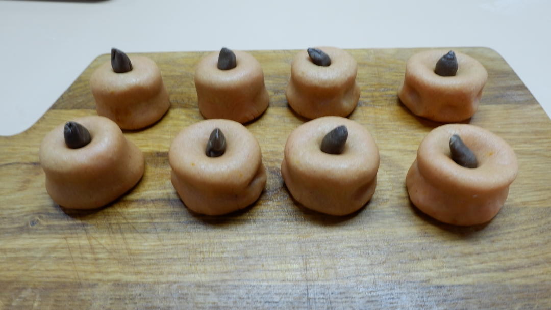 将面团分成8等份,并包裹馅料;
