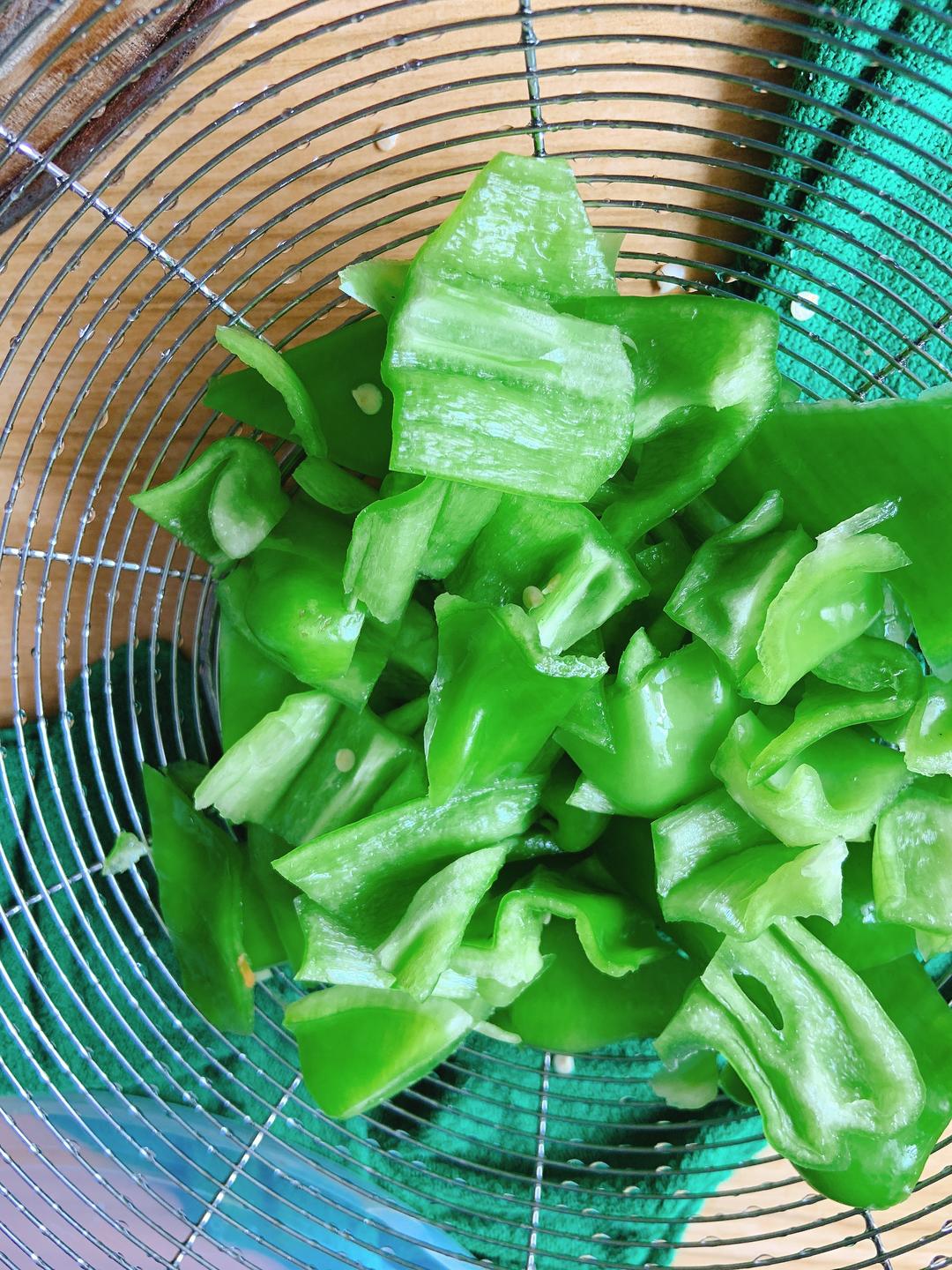 青椒切片备用。