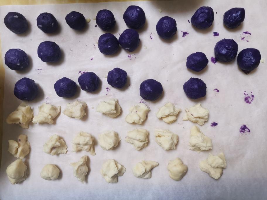 把紫薯分成25个大小大概25克左右的球球。