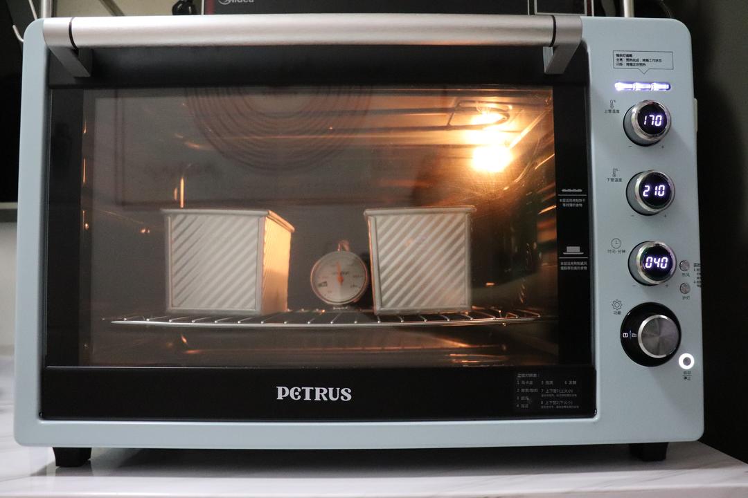 放入吐司模具中,注意入模时面团擀卷方向要一致,温度33-35度,湿度80%进行二次发酵。