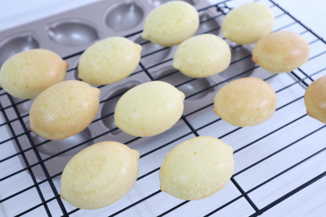 此配方可做学厨12连柠檬蛋糕模(WK9750)一盘,烤箱为柏翠PE5400。 时间和温度要根据自家烤箱调节,如果温度过高或烘烤时间过长,上色过重,就会变成金黄色的柠檬。 感谢 寻找米米提供配方