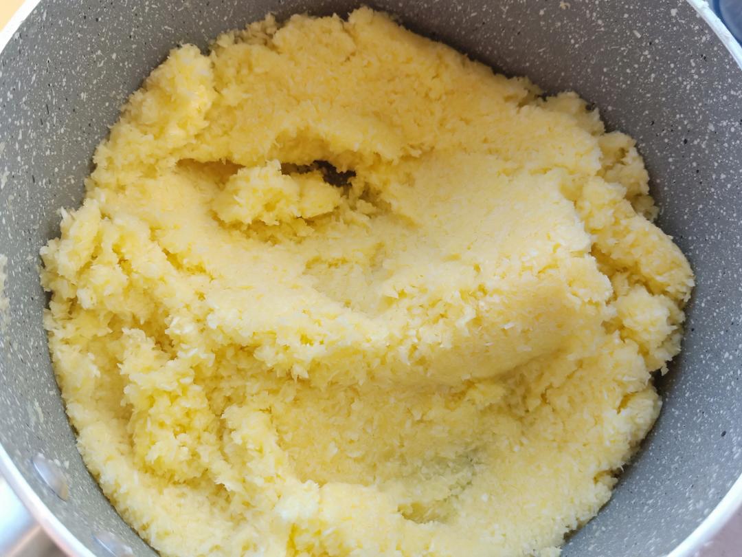 先制作椰蓉馅:将黄油、白糖、牛奶放入奶锅中小火加热至黄油与白糖融化关火。待温度降下来放入全蛋液搅拌均匀,再加入椰蓉拌匀即可。