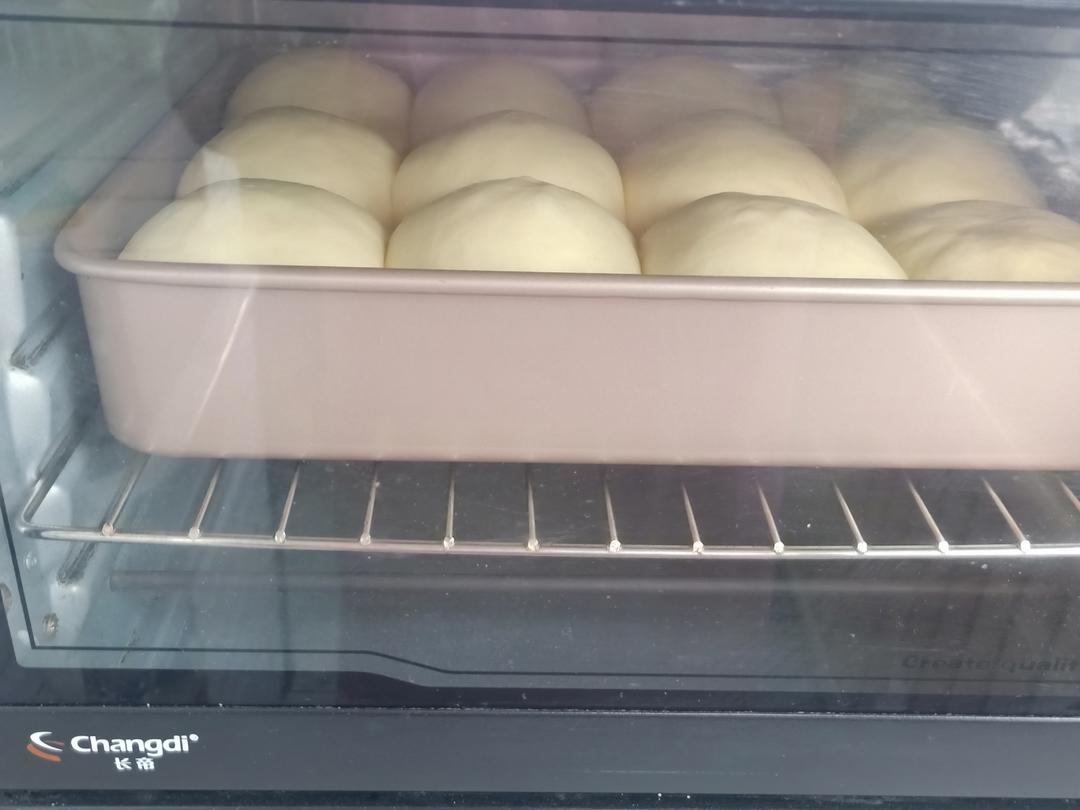 12个全部包好后盖上保鲜膜进行发酵,发酵温度28-35度左右就可以。