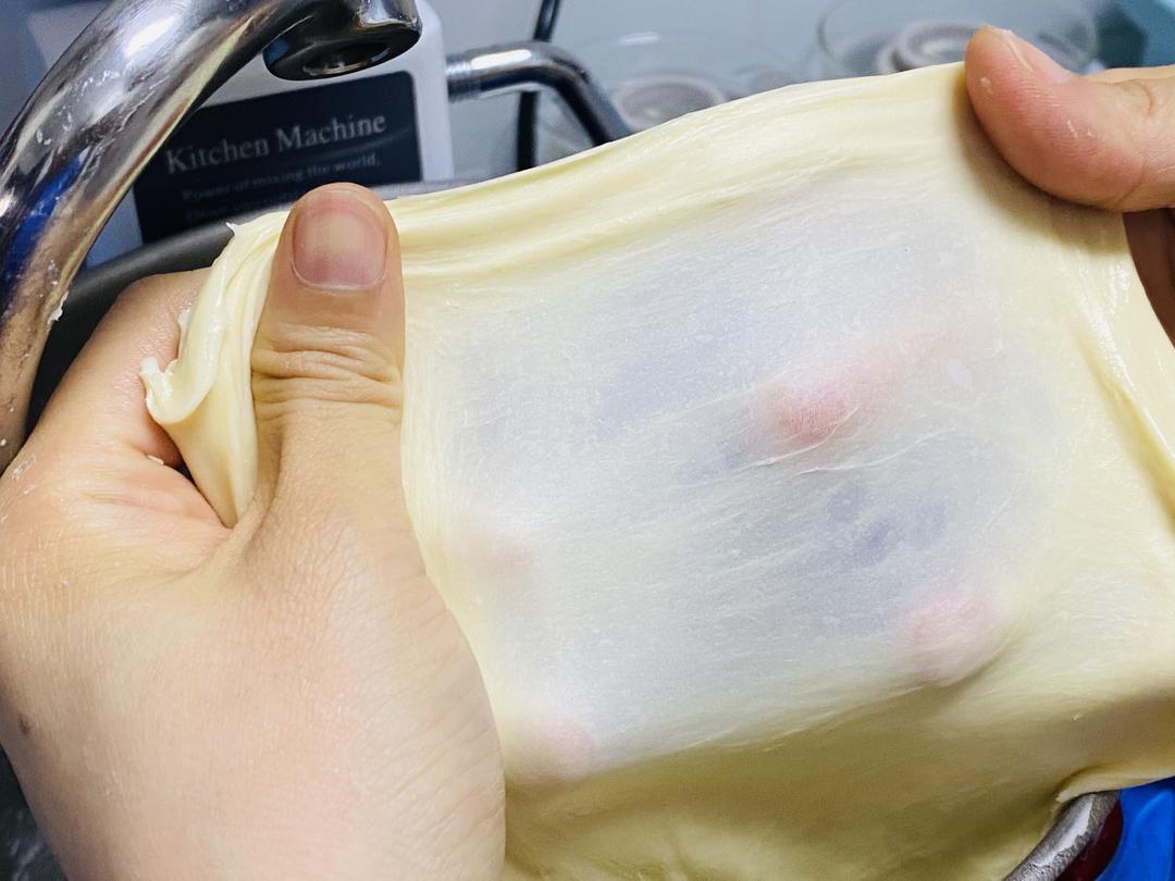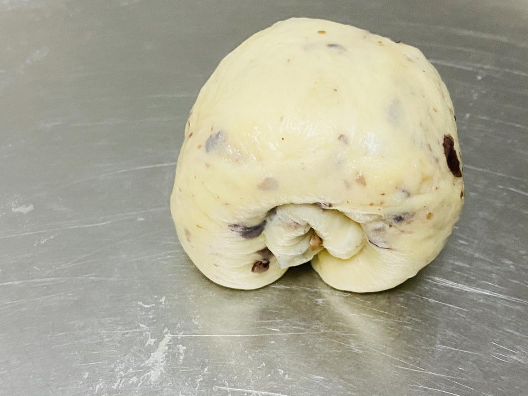 面团发至40分钟取出分9份,约60克/个,滚圆松弛20分钟