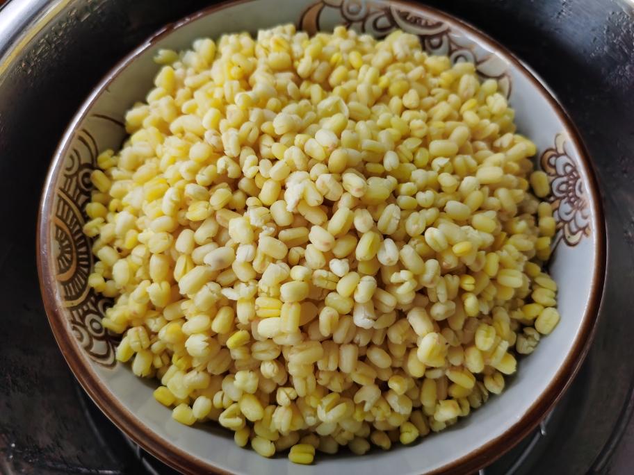 蒸好的绿豆外表基本没什么变化,但已十分酥软。