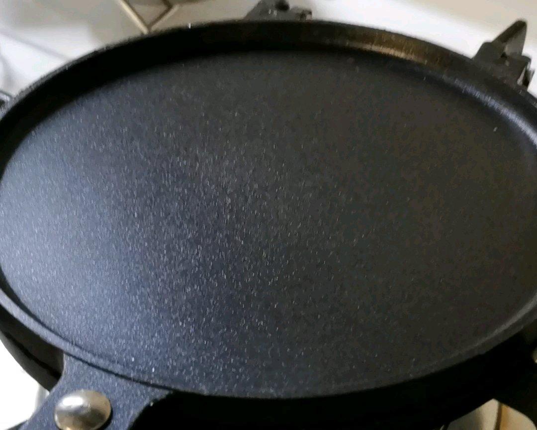 蛋卷模具少少刷一层油,翻动一下双面预热。只有第1次刷,以后都不要刷油了。