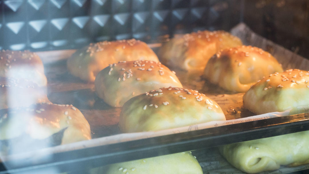 7、烤箱提前预热 220度5分钟就行,预热好后放入包子,上下管220度中层烤25-30分钟,最后几分钟观察颜色,千万别烤糊咯;