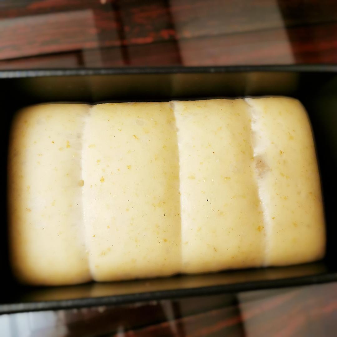 依次放入土司模具里,进烤箱进行二次发酵,38℃大约两个小时的样子。