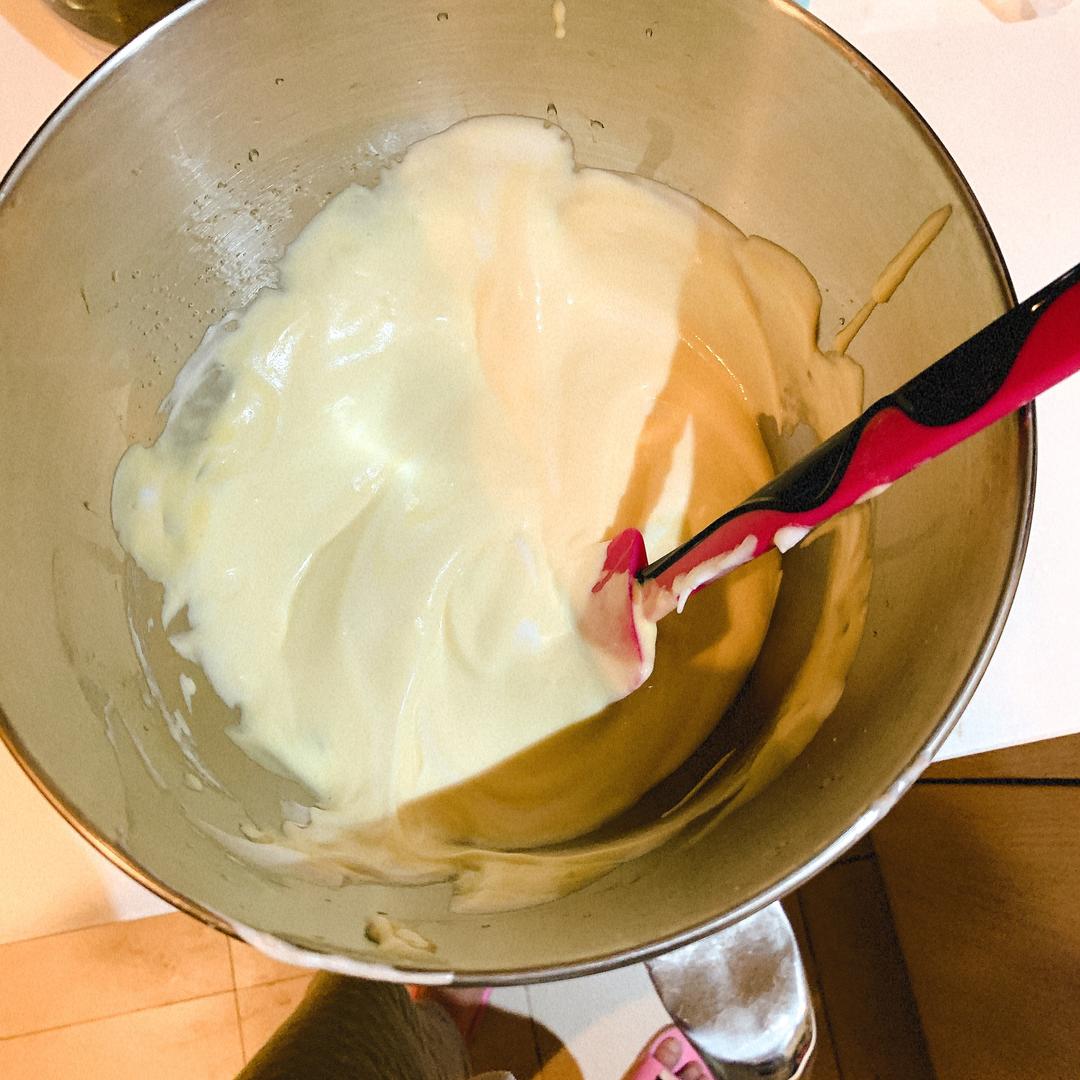和戚风一样翻拌,不要过度搅拌到均匀