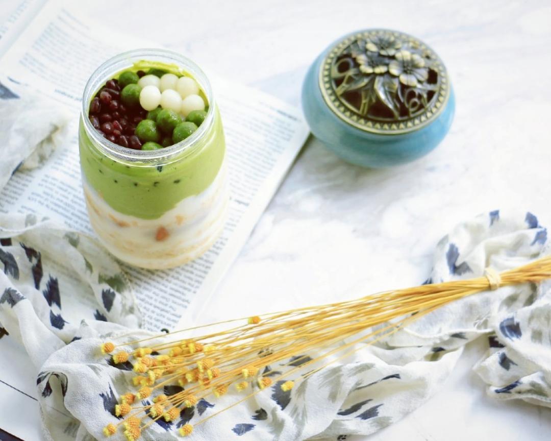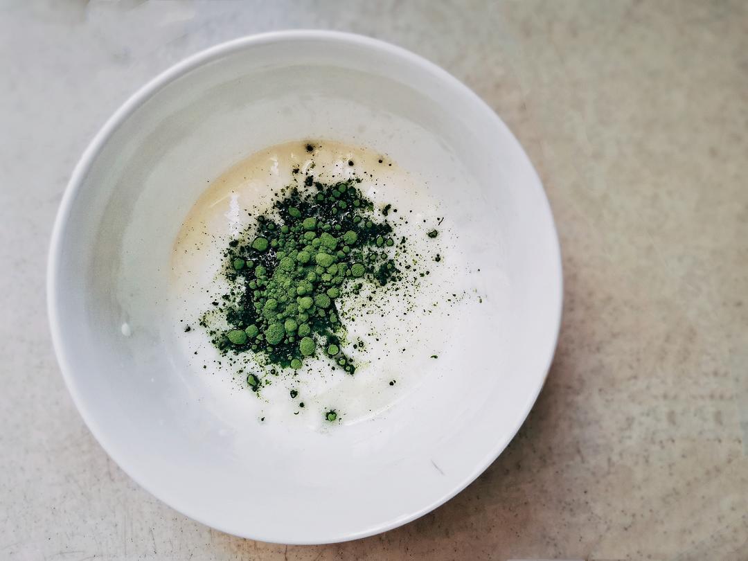 剩余酸奶倒入适量抹茶粉。