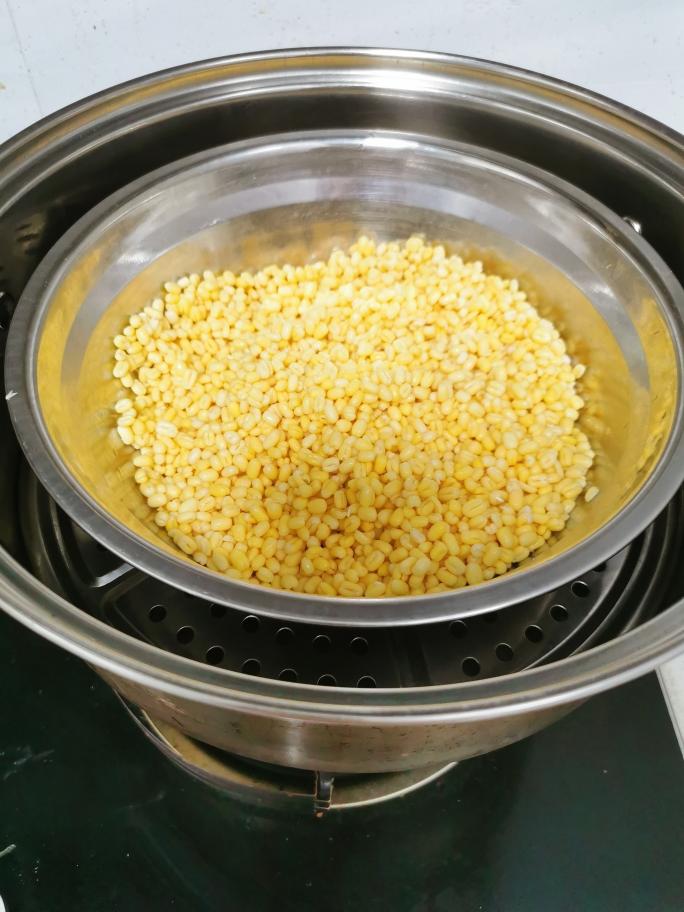 泡好的绿豆沥干水分放入蒸锅 大火蒸煮30-40分钟