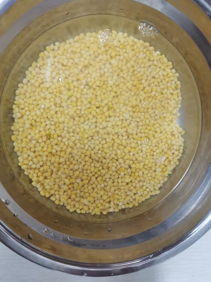 取脱皮绿豆200g加入约500ml清水(没过绿豆就行了)浸泡8小时以上 中间可换几次清水继续浸泡 我是晚上泡,第二天起来了做的