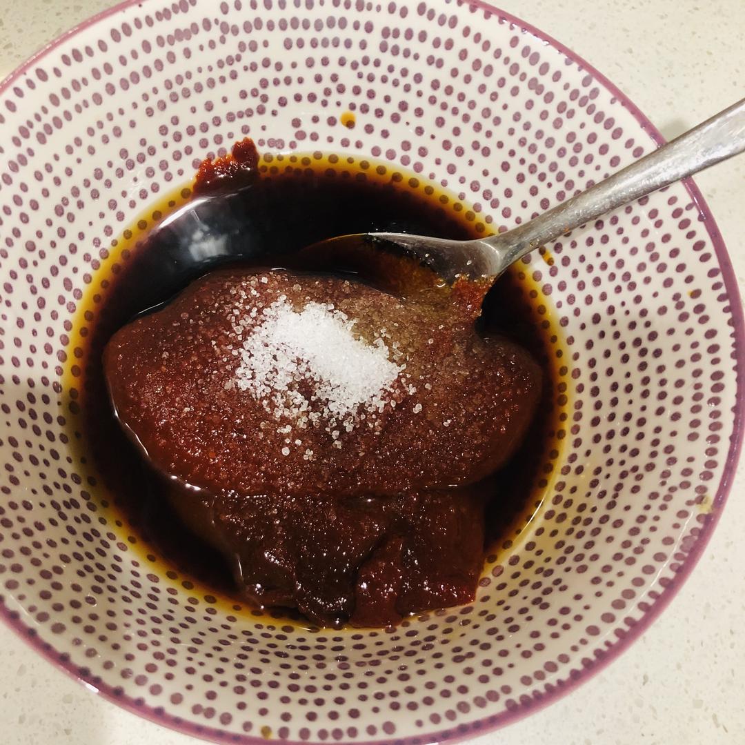调制酱料,辣酱、生抽、白糖、辛拉面调料包➕水