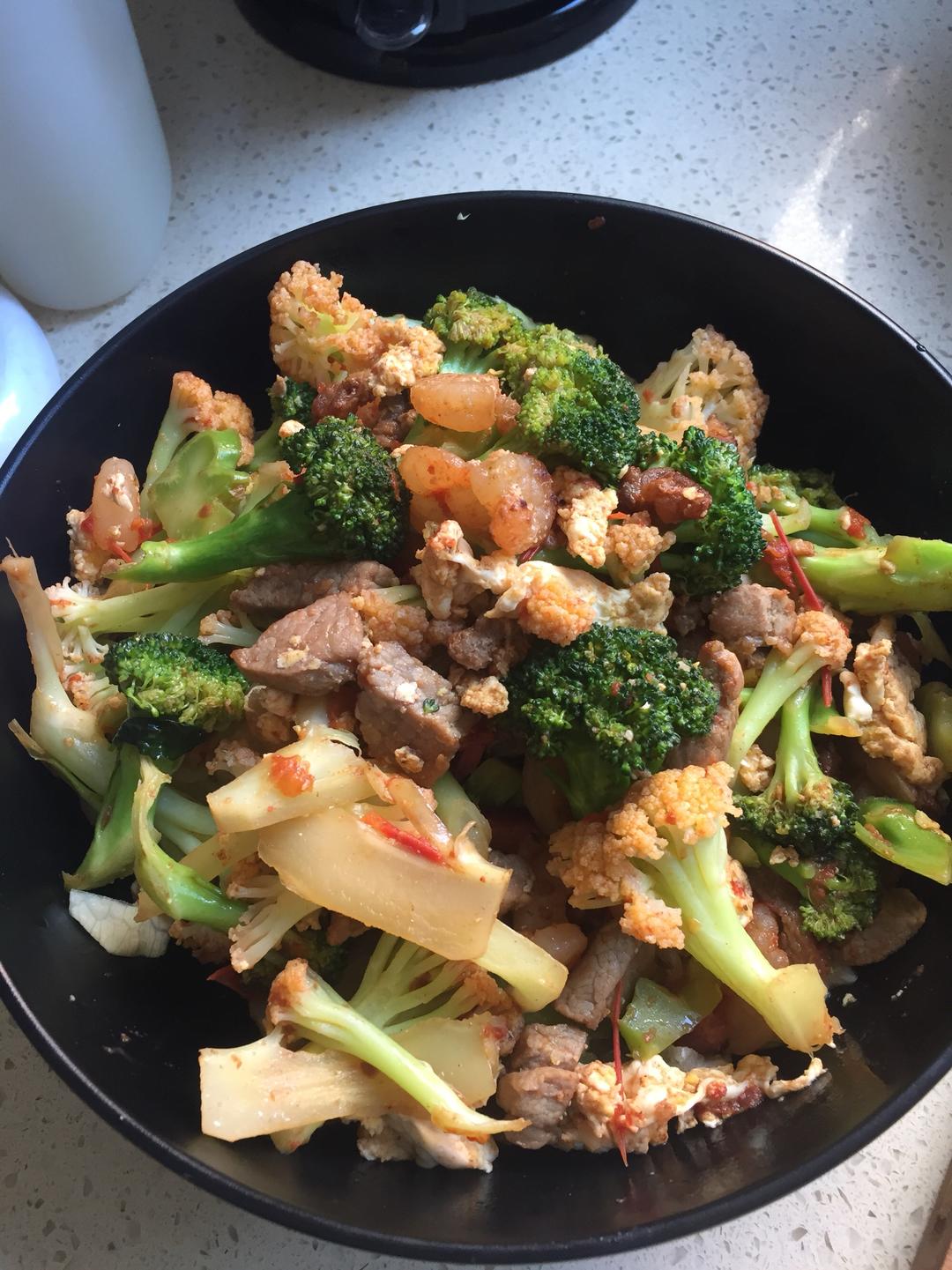虾仁,西兰花,菜花,鸡蛋,西红柿,牛肉,腊肉 味道还是符合喜好的,感觉使用筋头巴脑增加牛肉量更好吃,有点腊肉味还不错 小结:鸡蛋还是应该提前炒熟在添加,颜色不美丽了,使用的虾仁有些小,下次考虑用黄油炒