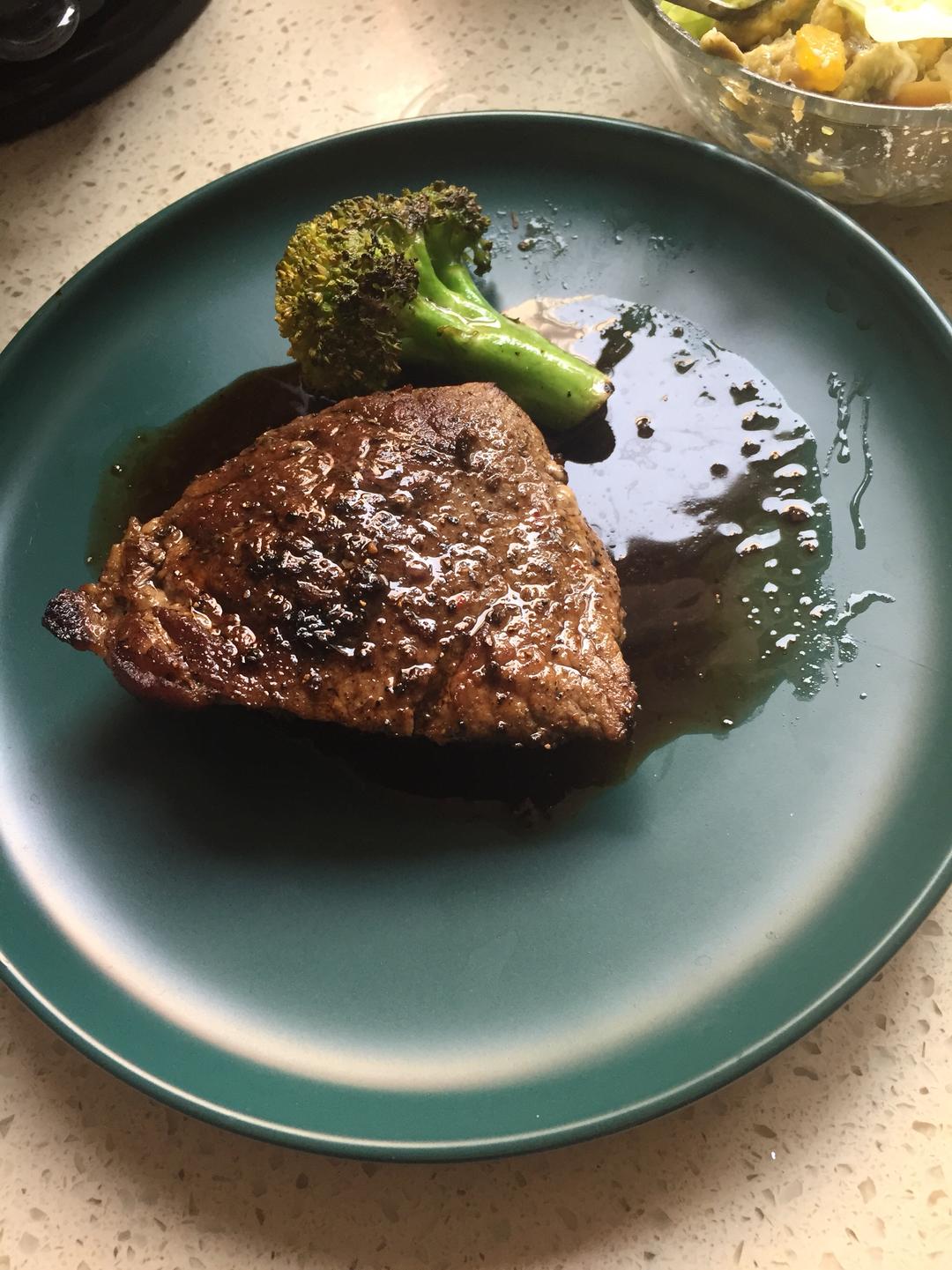 牛肉应该炒着吃,不是用来做牛排的部位,可是我懒得切了所以就直接煎了😩 结论:果然不适合做牛排 新购入十寸大碗🤗