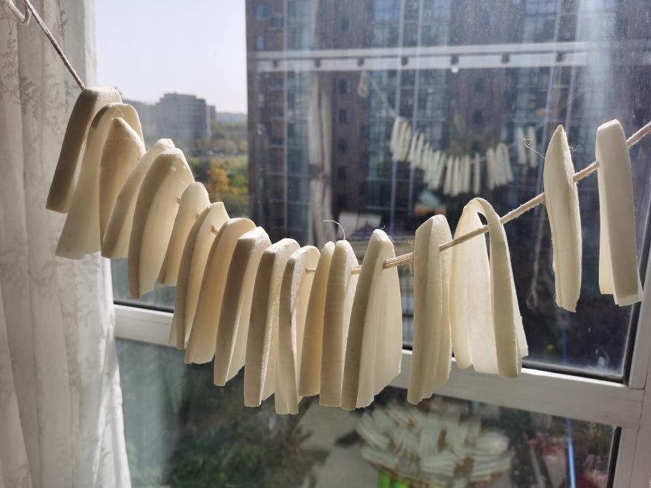 初冬北京的阳光很好。第三天。因为切的不均匀,干的程度不同,索性撕开来了,差不多晒好的收拢一边,剩下的继续暴晒一天。