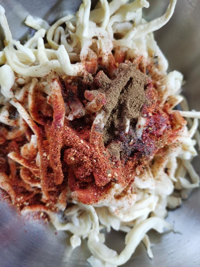 加入辣椒粉,花椒粉,五香粉,米酒汁继续揉搓均匀。