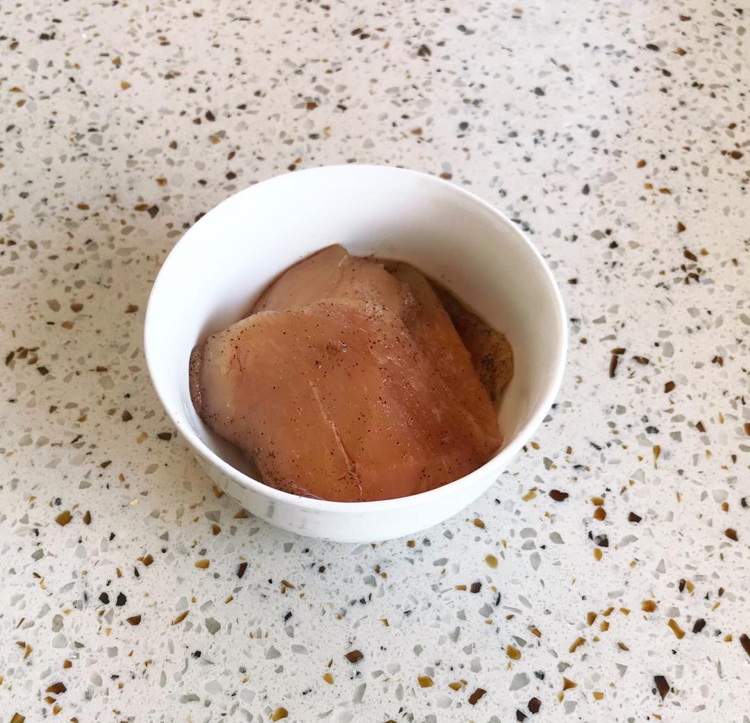 锅中刷一层油,烧热后放入鸡胸,煎至两面变色
