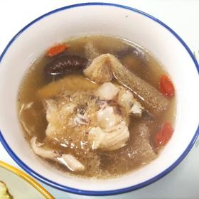 比食谱增加了一到工序,将鸡肉飞水,就是将鸡腿放入冷水中,大火煮沸3-5分钟,取出鸡腿,将水倒掉,洗净锅再将鸡腿放在冷水中武火煮沸20分钟。这样就可以除去浮沫了。再放入竹荪和枸杞文火煮15分钟即可。好久没喝竹荪汤了,超级美味的说😘 #晚餐•2016年4月26日##广式靓汤系列#