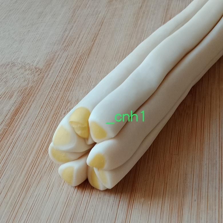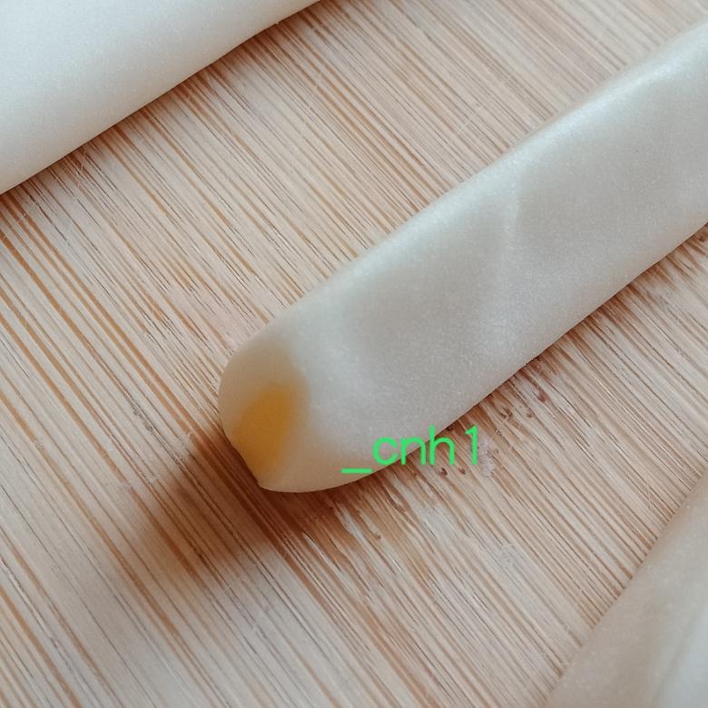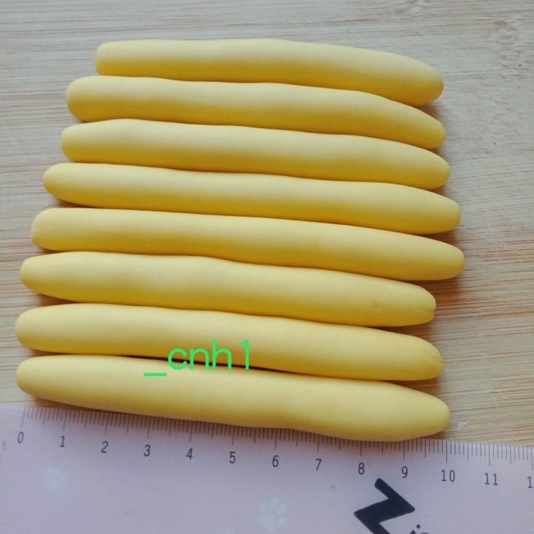 粘上白面球。因醒发后会回缩,所以胚身需搓长一些。
