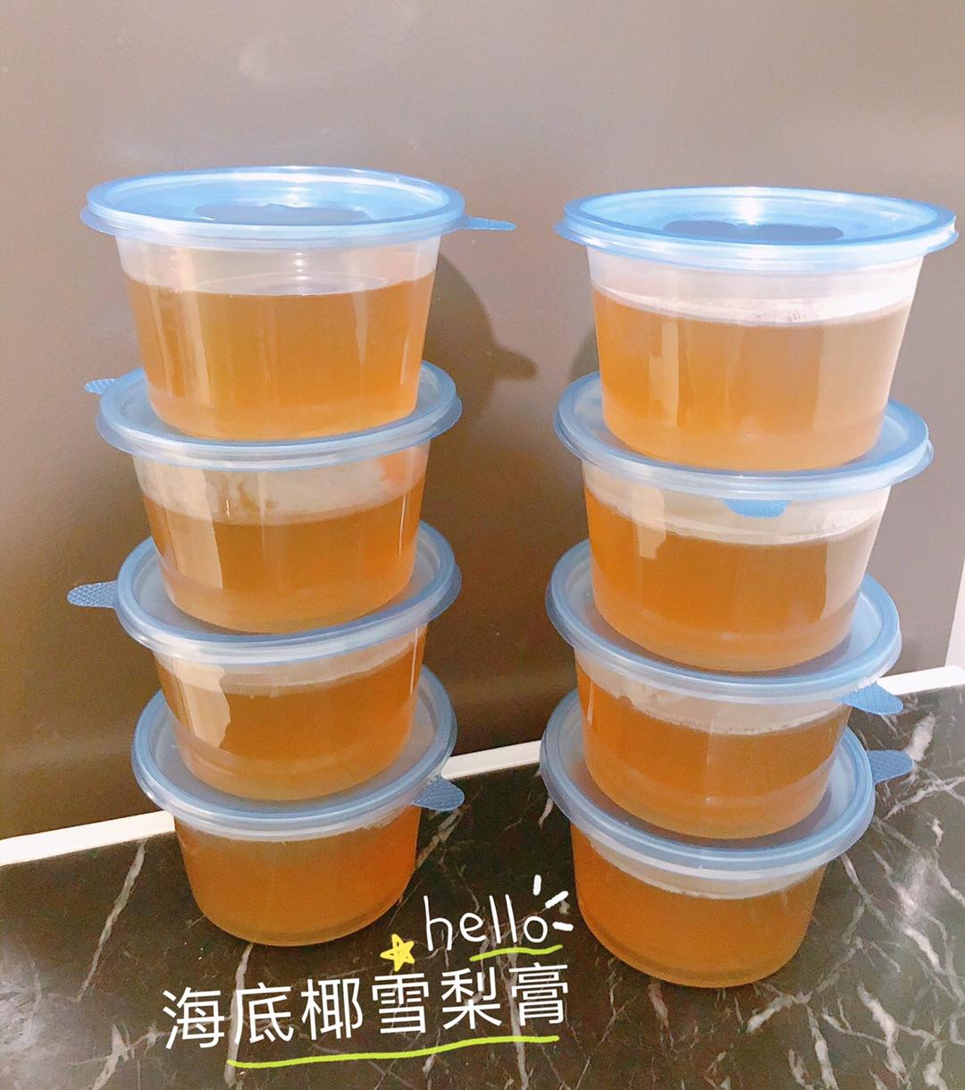 每次做这个海底椰雪梨膏我都会做一大锅,其实在煮这些材料的时候用水多一点也没关系,只要记住:1000ml兑100克白凉粉就可以了,剩下多出来的可以直接喝掉,清热解毒~ 不要浪费嘻嘻😁