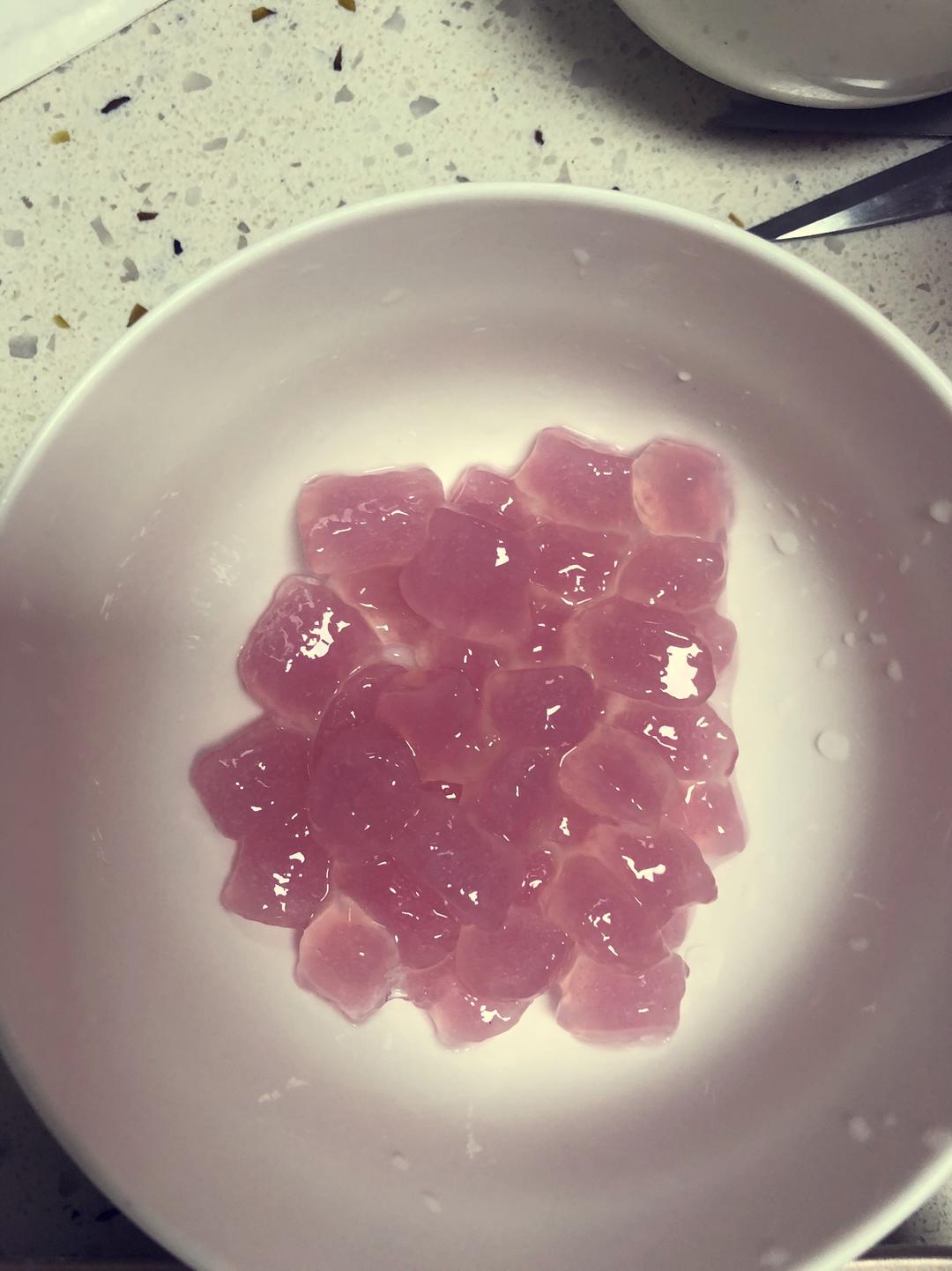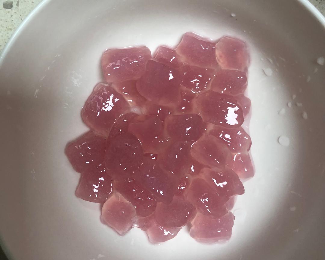 最后就是煮开水后放入啵啵,煮个五分钟左右就差不多了,捞出来马上过凉水,就是晶莹剔透的水晶感。